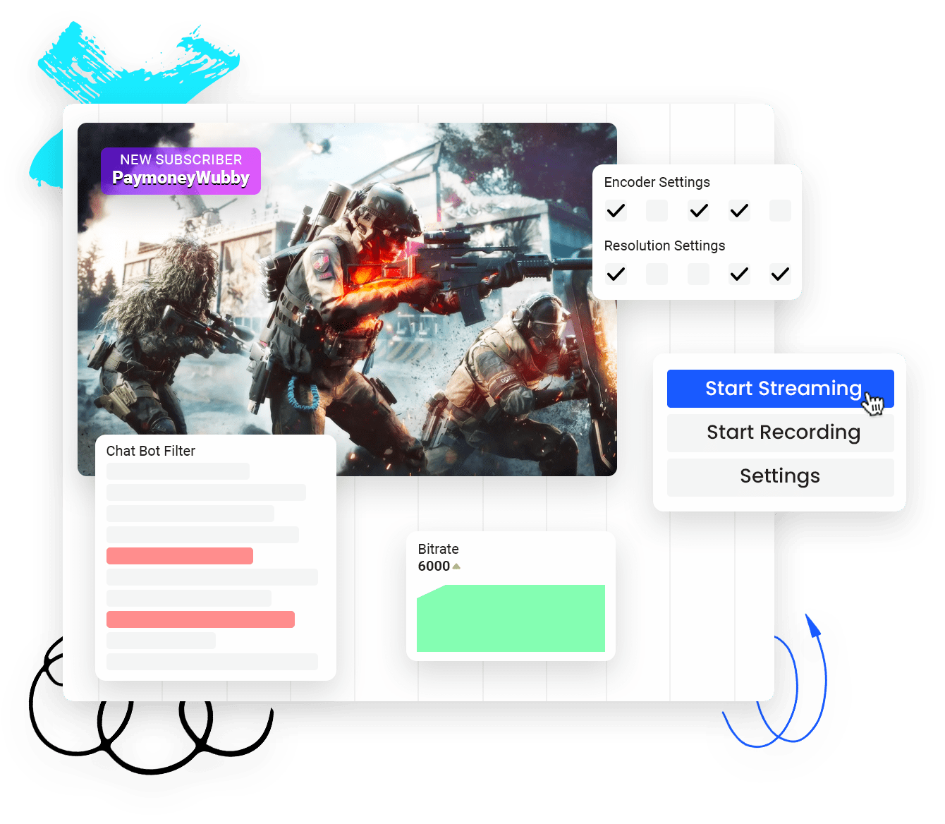Enjoy seamless streaming, free from technical headaches. We optimize encoder settings, integrate overlays effortlessly, and filter chat effectively, so you can focus on what matters most – engaging content and building a loyal community.