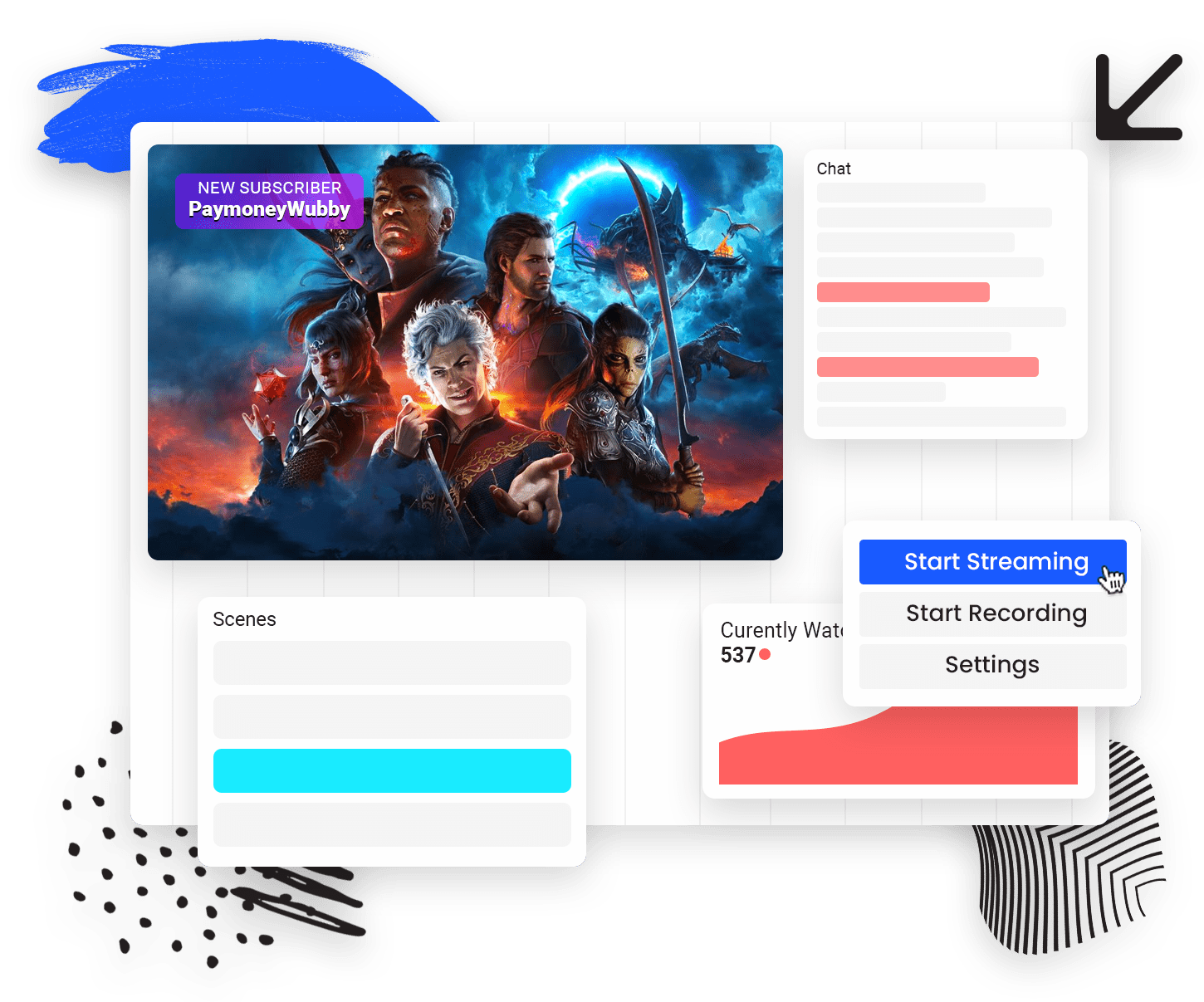 Elevate your stream with custom overlays, scenes, tipping page and engaging alert integrations.